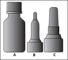 Paso 3. Cierre la botella de vidrio (A) con el cuentagotas (B) con tapa de plástico (C) sin quitar el cuentagotas de plástico (B), hasta la próxima administración.